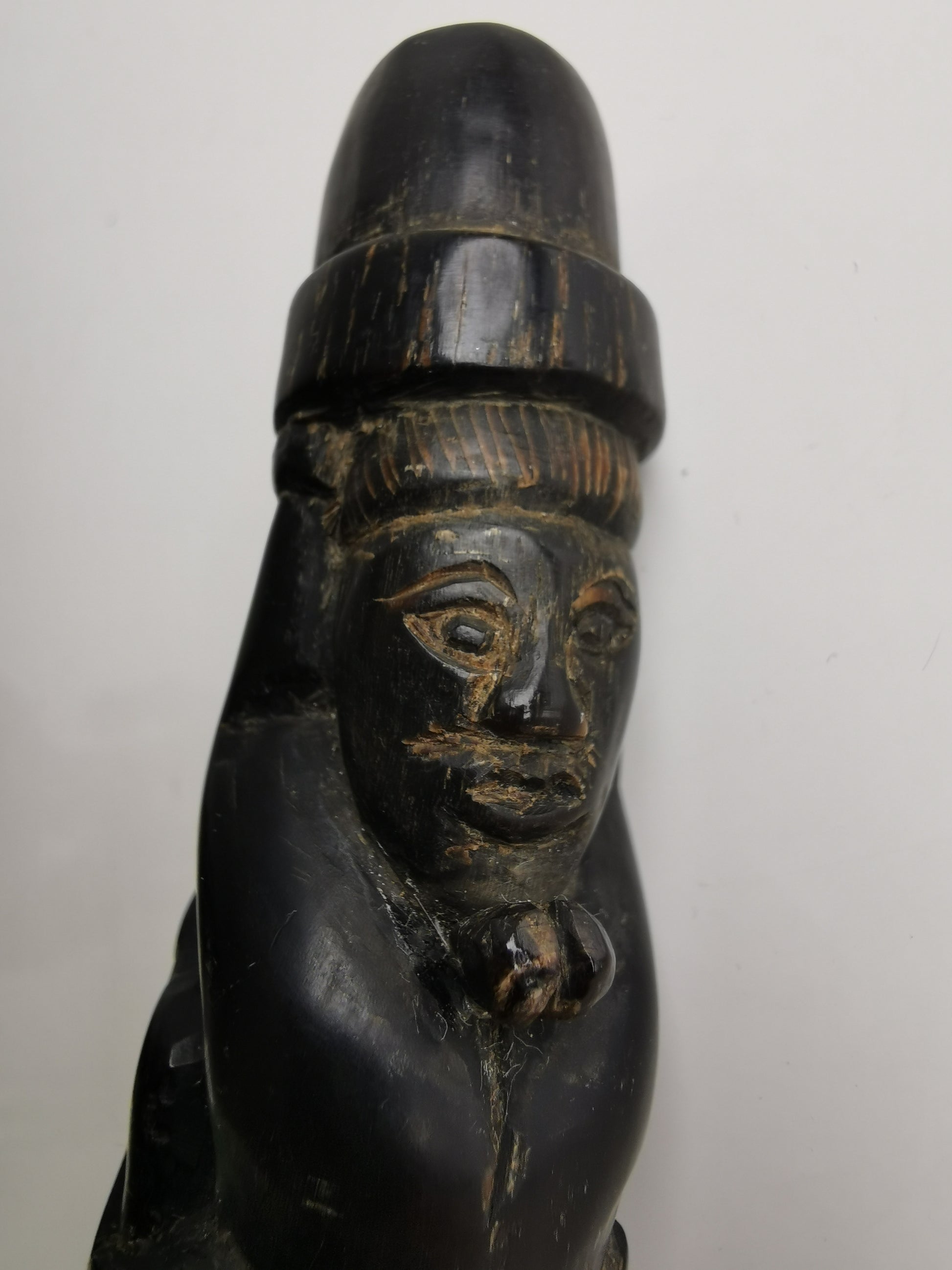 This captivating African Erotic Hunting Whistle is meticulously crafted from ebony, a prized hardwood known for its deep, lustrous colour and exceptional durability. The whistle depicts a dynamic and explicit scene of a couple engaged in a passionate sexual act, showcasing the intricate artistry and cultural significance of this intriguing object.
