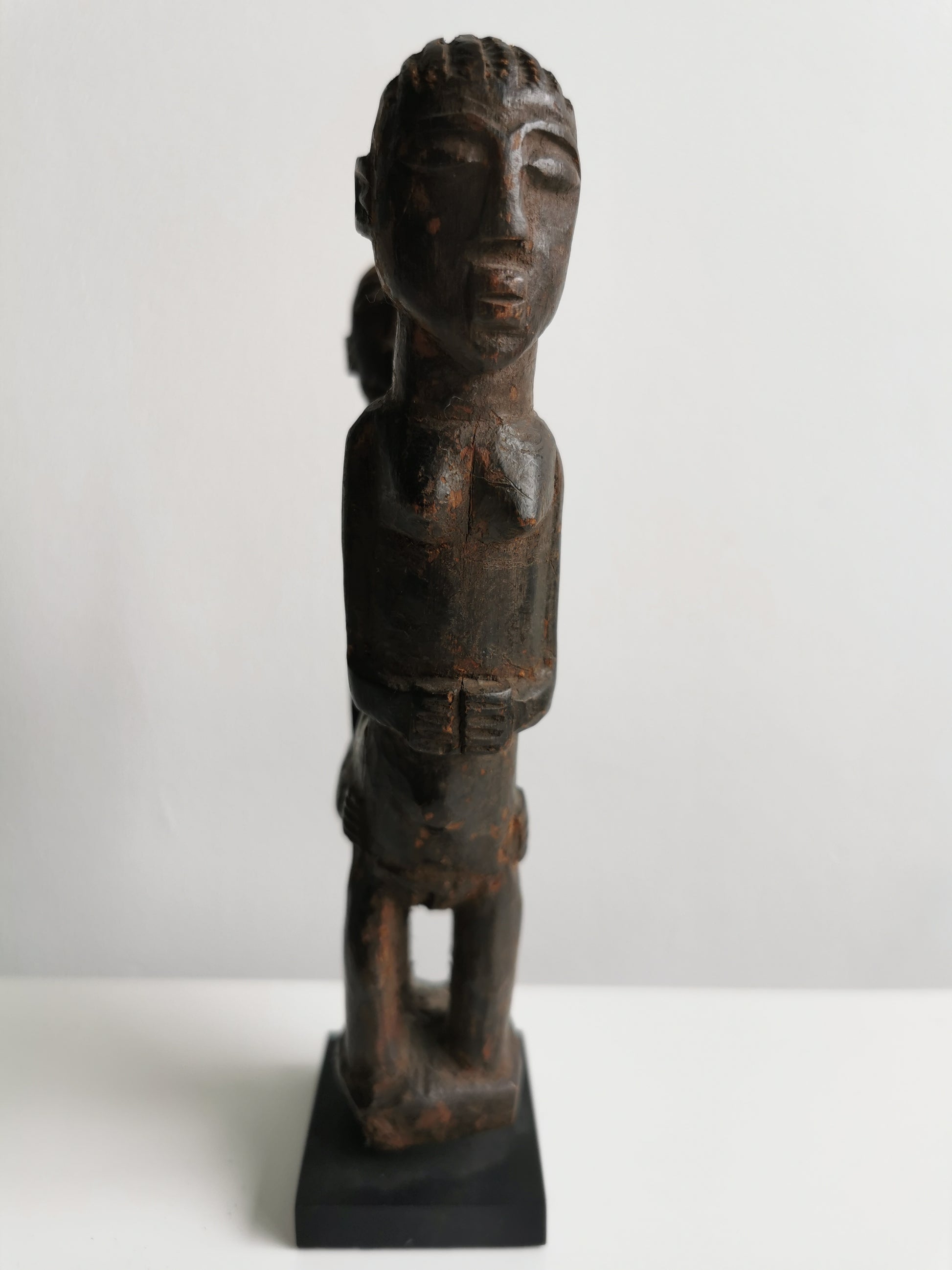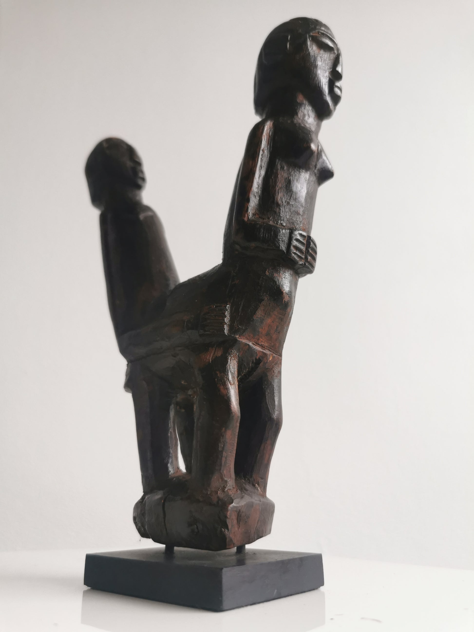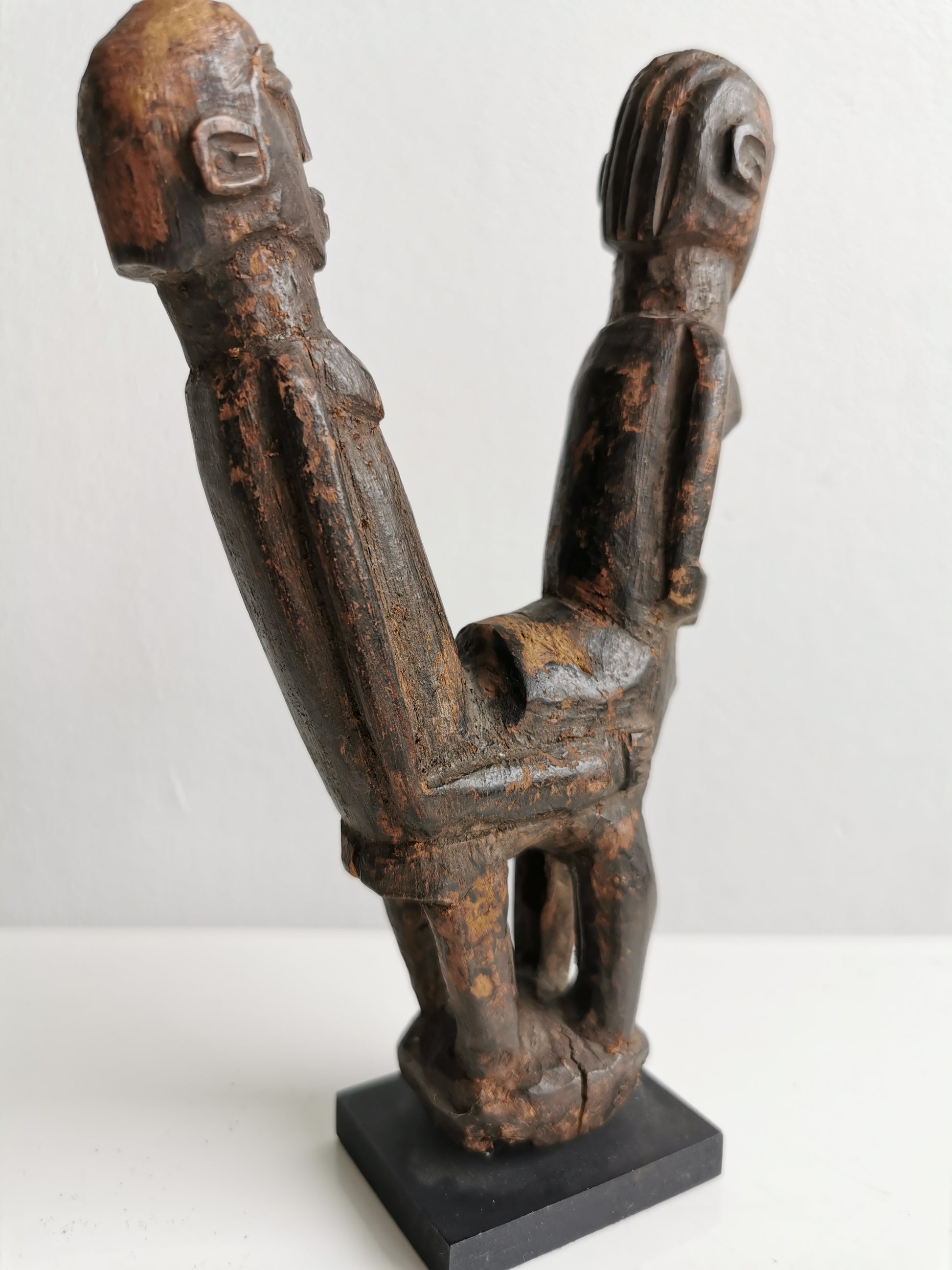 The "thilbou khe mounkha" are prescribed to single men so they can find a wife and to women and couples to avoid sterility and/or to be blessed with child. The couple's figures are rendered with a sense of realism and emotion, highlighting the importance of sexuality and fertility within their cultural context.