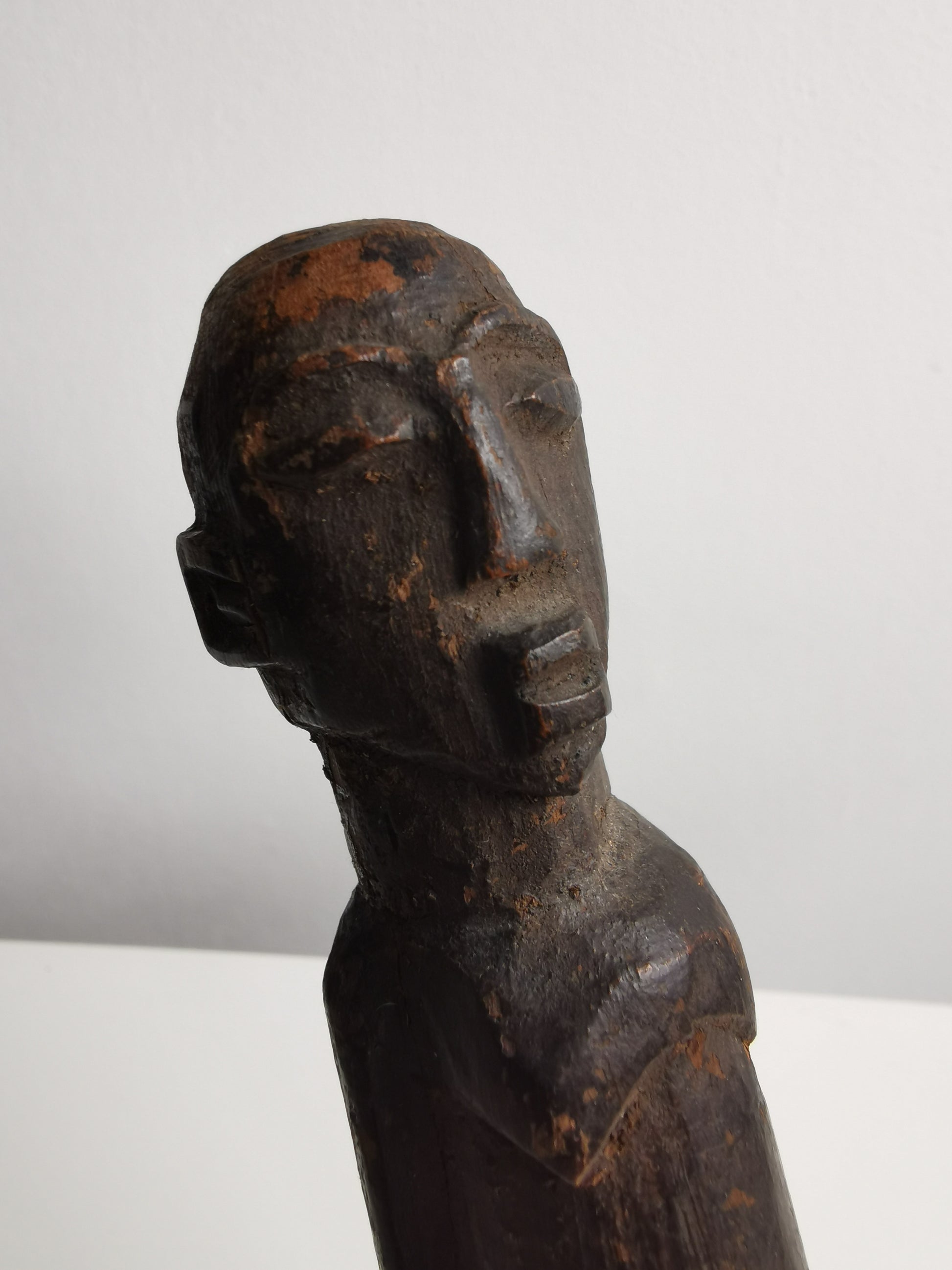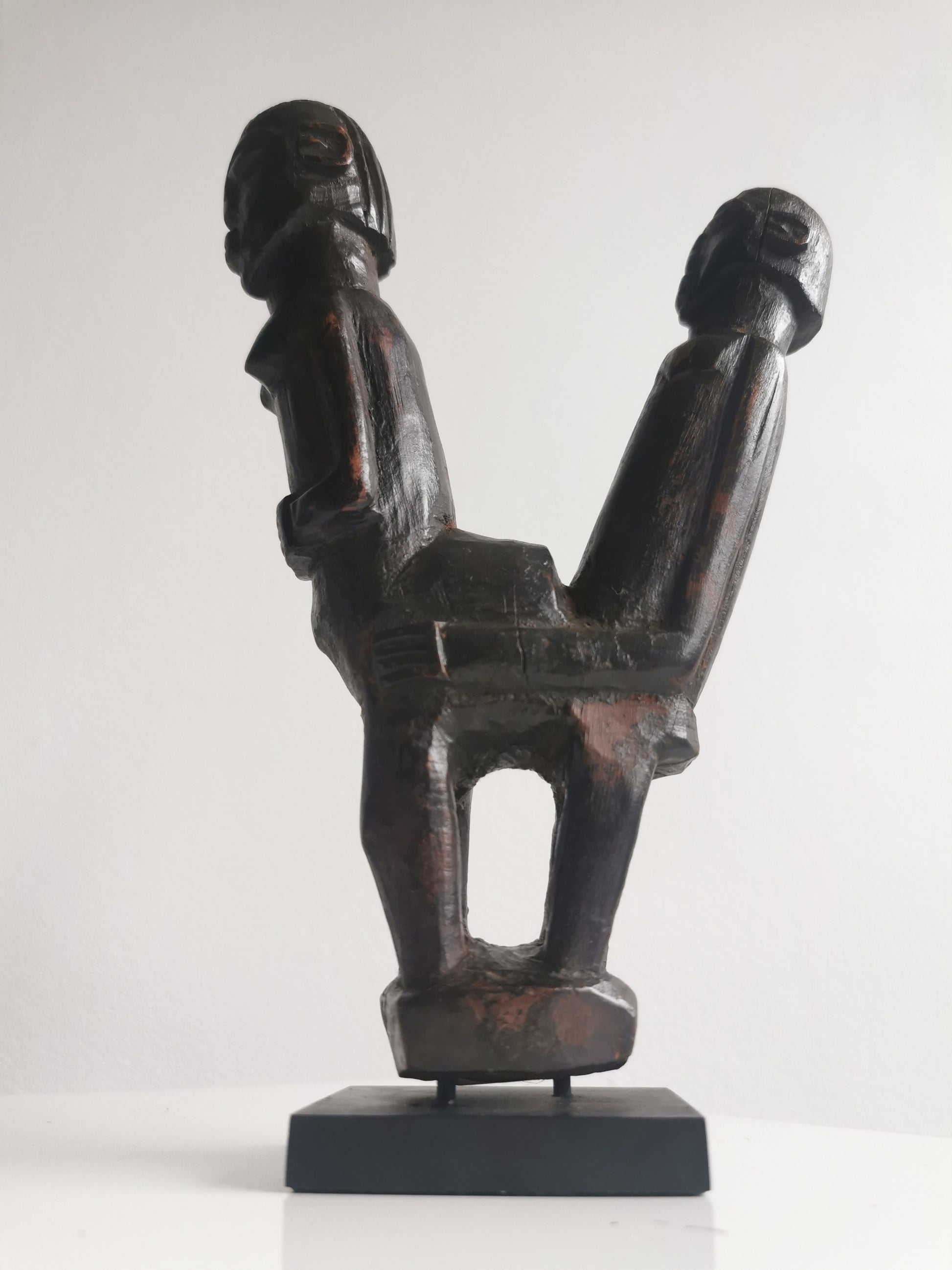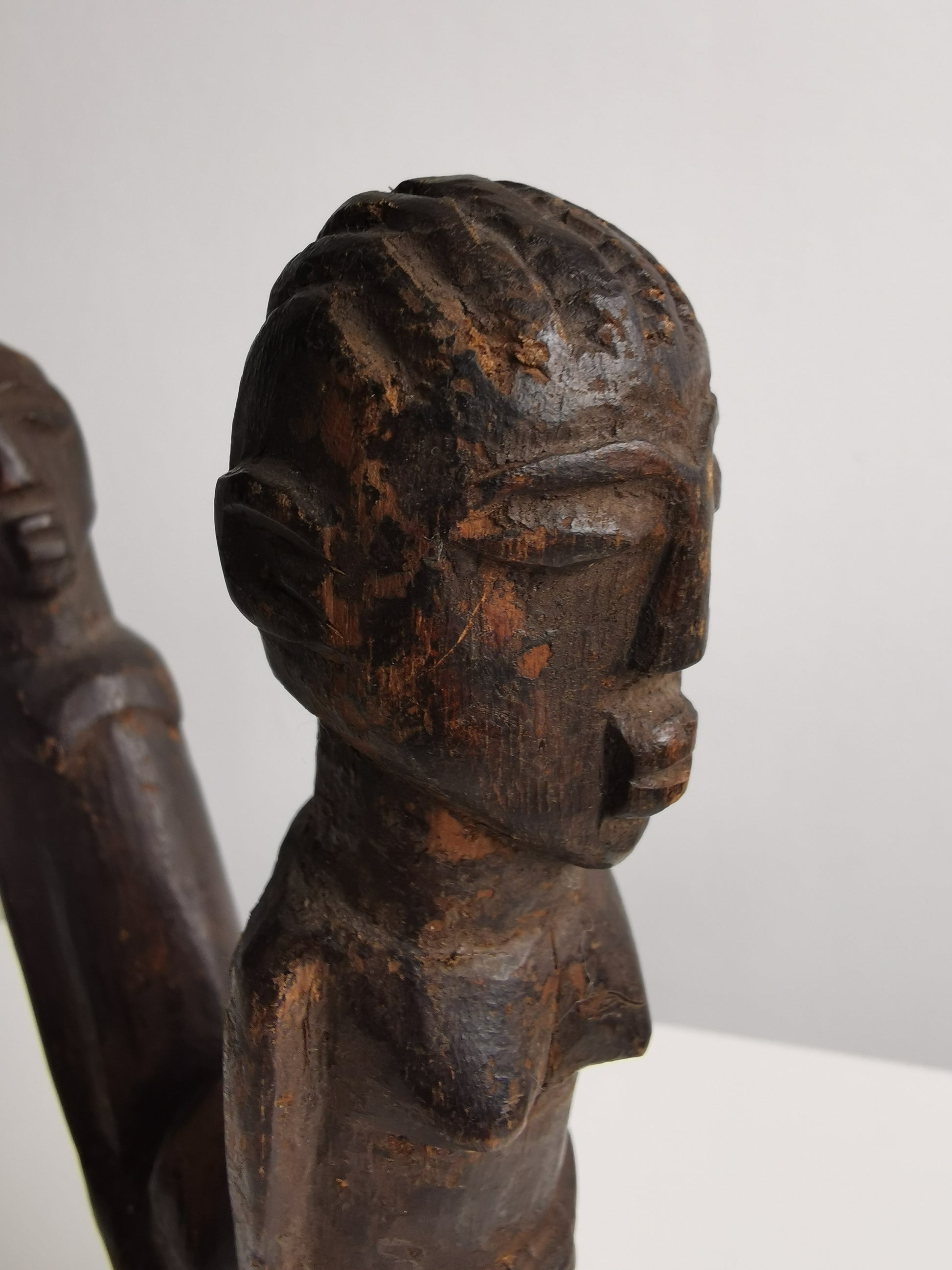 This captivating wooden statue, crafted by the Lobi people of Burkina Faso, depicts a couple engaged in a sexual act.