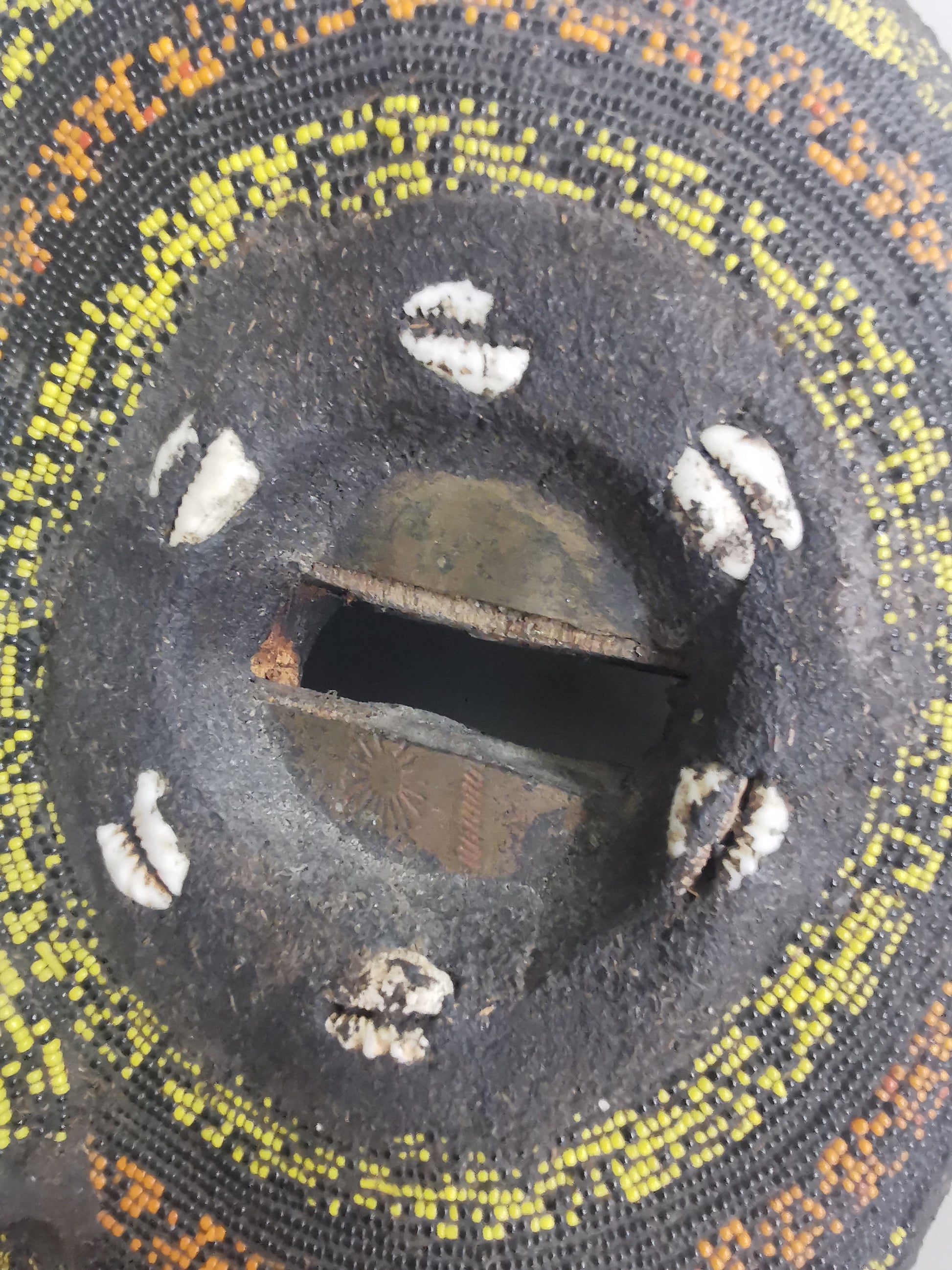 Ashanti Baluba Moon Mask with coloured jigda beads and cowry shells