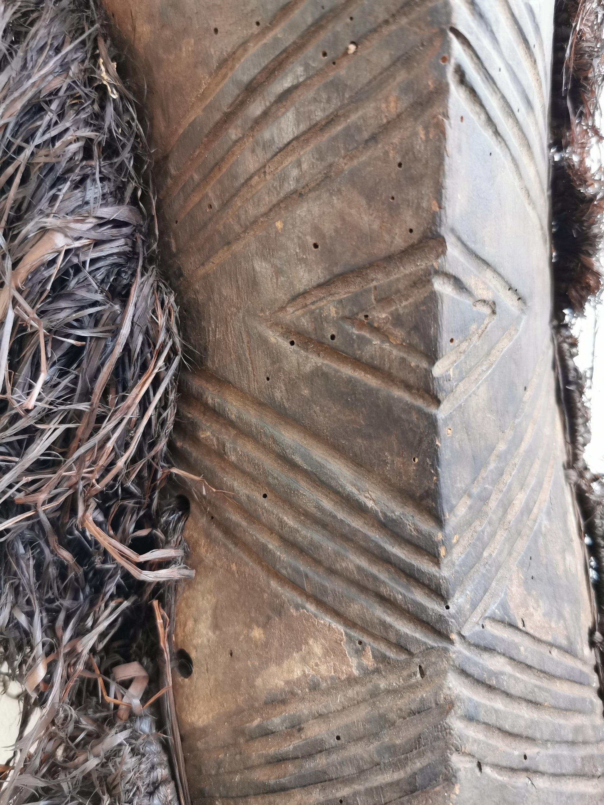 One of the many mbuya masks performed at community festivities, is the giwoyo (called kiwoyo among the Eastern Pende); said to be among the oldest Pende masking traditions. Believed to represent the spirit of the dead, giwoyo masks are worn on the top of the head of the dancer to give the appearance of a cadaver in a coffin during a wake.